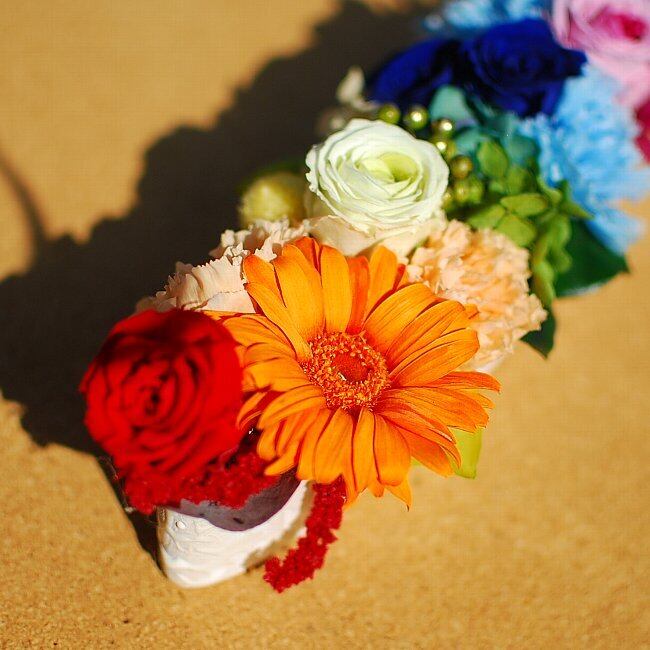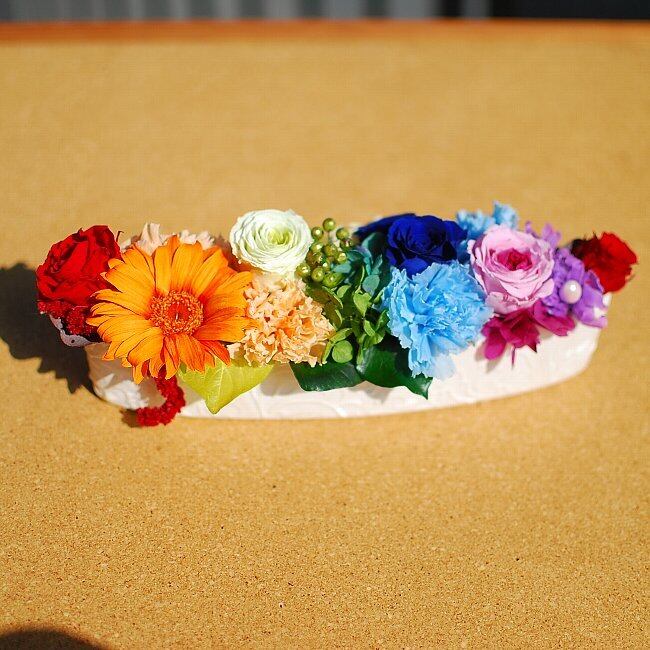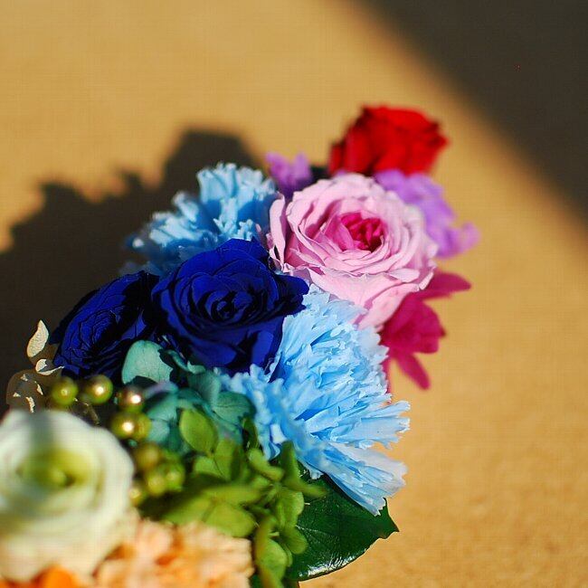 生花にはない青や黒といった色から自然なピンクや黄色までカラーバリエーションも豊富です。