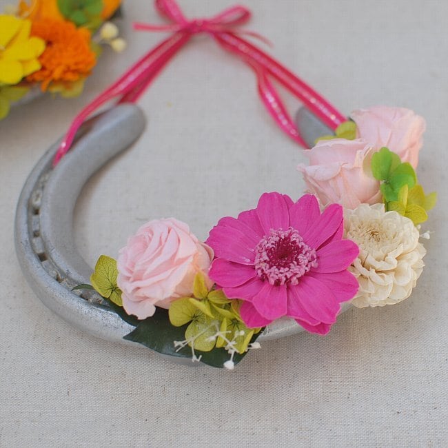 蹄鉄とプリザーブドフラワーのcuteなリース♪