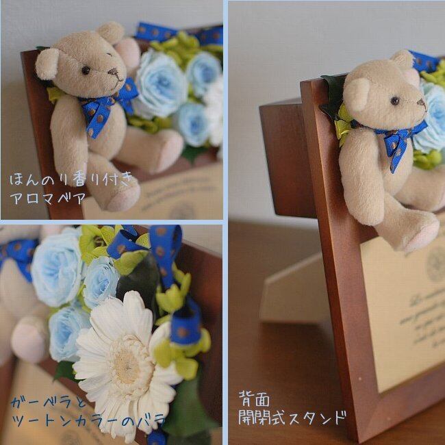 ほんのり香るアロマベアとガーベラのフォトフレーム。