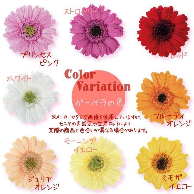 セミオーダータイプでガーベラ、バラ、あじさい、リボンの色が選べるようになりました!